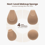Our upgraded sponge duo delivers finer foaming, less product absorption, and a softer, more flawless-looking finish.