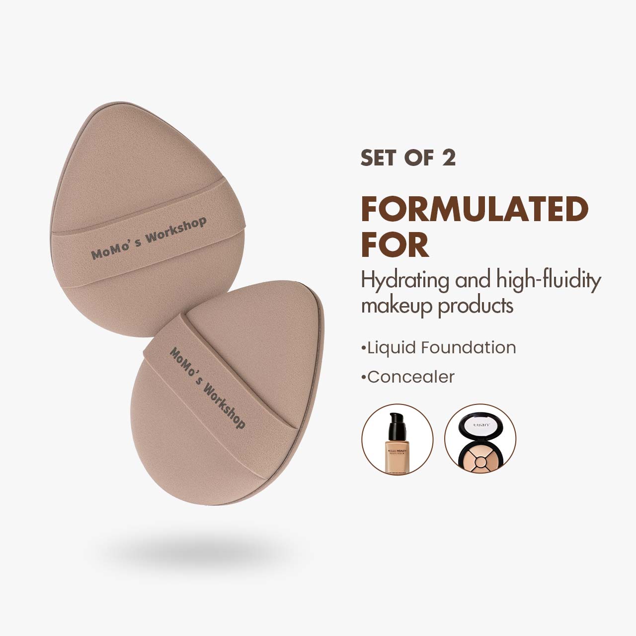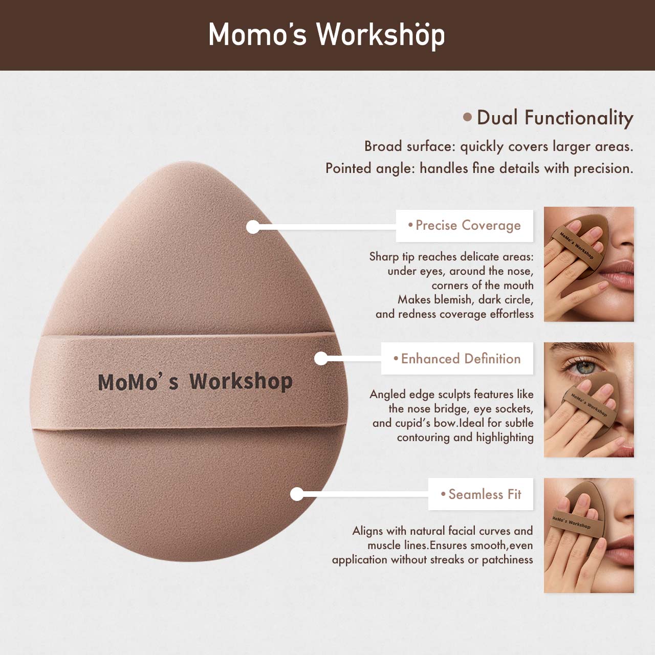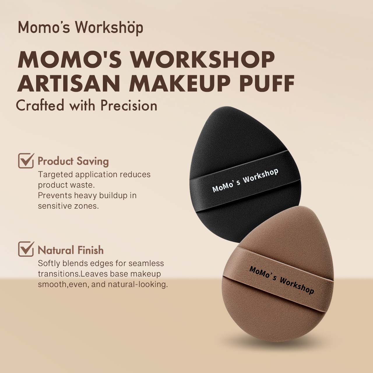 Available in two versatile shapes, the egg-shaped puff fits naturally along facial curves, while the straight-cut puff provides a flat edge for controlled blending under the eyes and around the nose. The dense, resilient surface delivers minimal product absorption, helping you preserve coverage and achieve smooth, even layers.