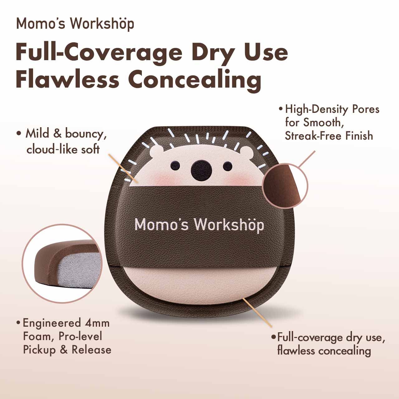 This puff feels like clouds on my face. I have dry skin, and most puffs make me look patchy—but this one presses powder in so lightly and evenly. Plus, it looks like a tiny hedgehog—what’s not to love?