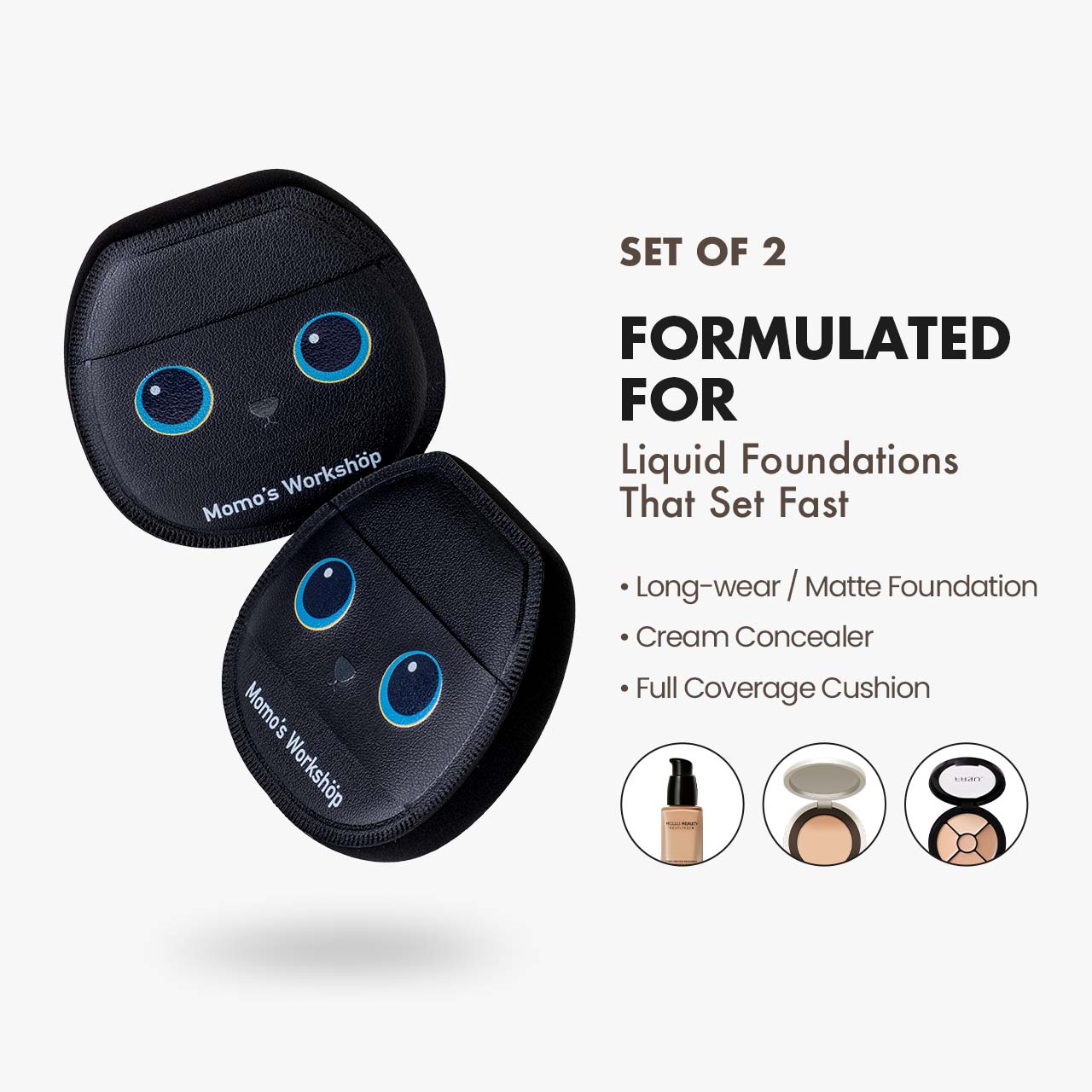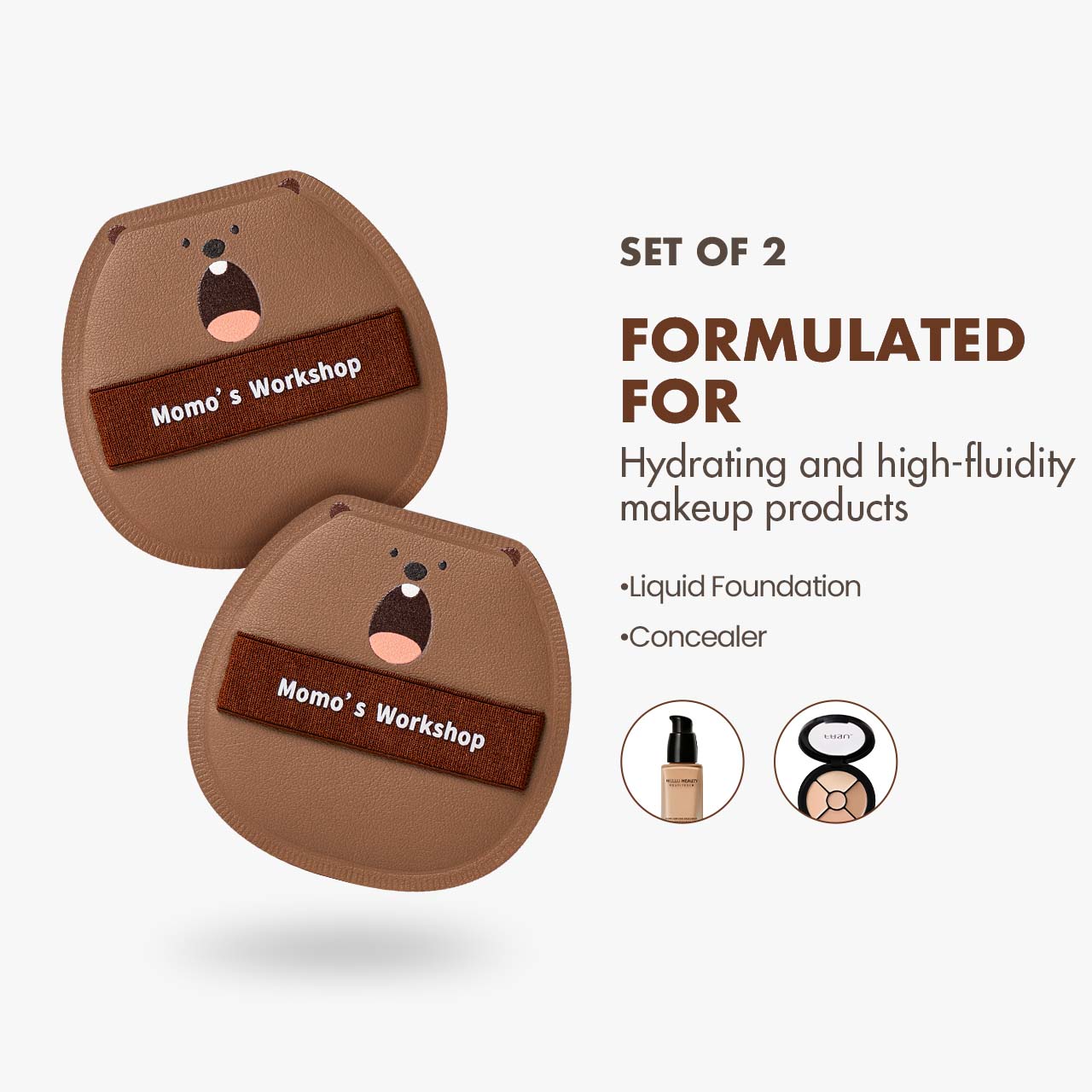 The puff looks like a novelty item, but it actually applies powder beautifully. It leaves a soft, blurred finish and doesn’t disturb my foundation. I got the bear one and now I kind of want the whole set.
