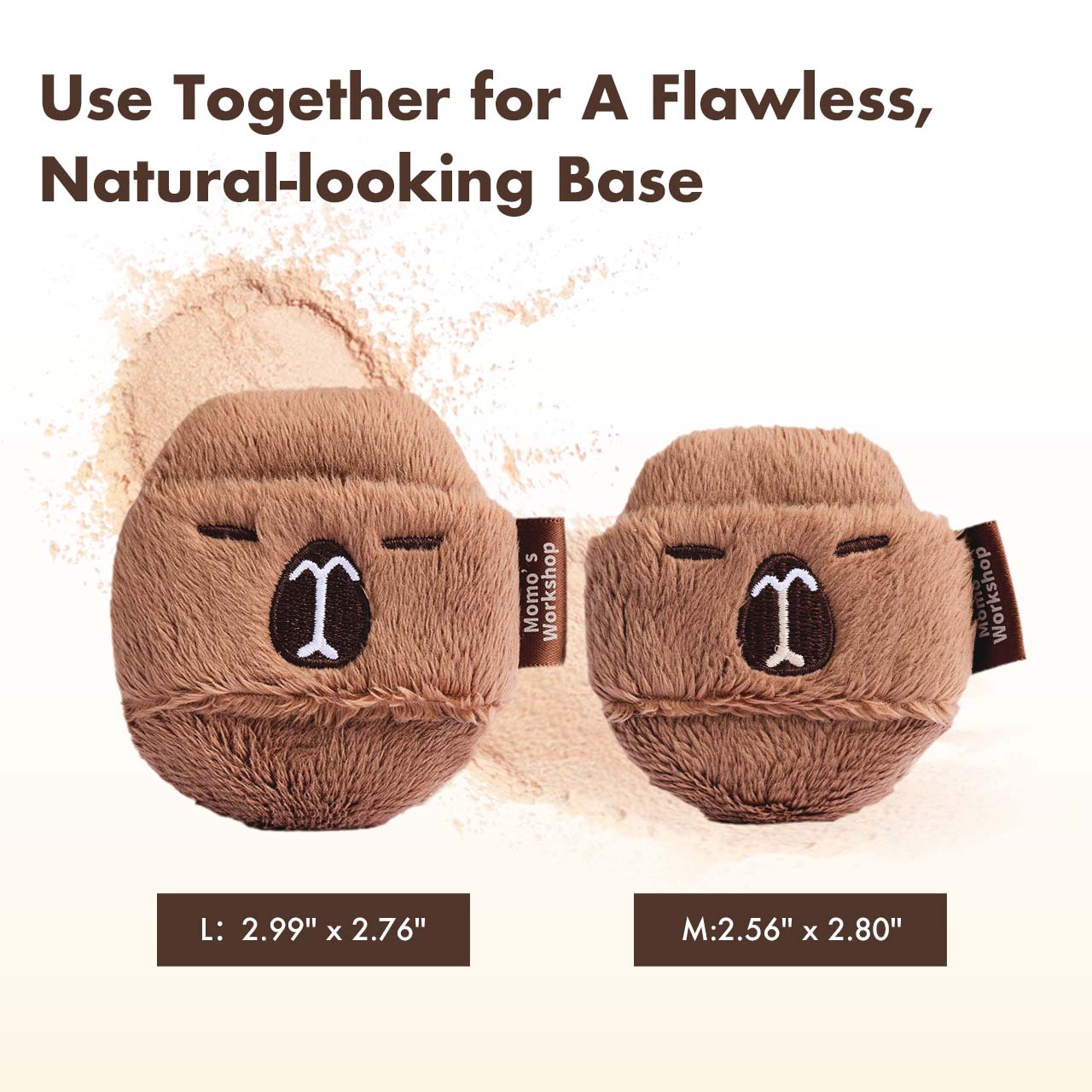 Crafted with long plush fibers, the Capybara Puff offers a velvety surface that minimizes friction while maximizing powder pick-up and release. The soft texture hugs the contours of your face, allowing seamless blending without disrupting the base. Available in two sizes — M for detailed setting, and L for broader areas — it caters to both all-over coverage and delicate zone work. Its banded grip provides control and comfort, while the plush fabric feels like a soft animal cuddle with every pat.