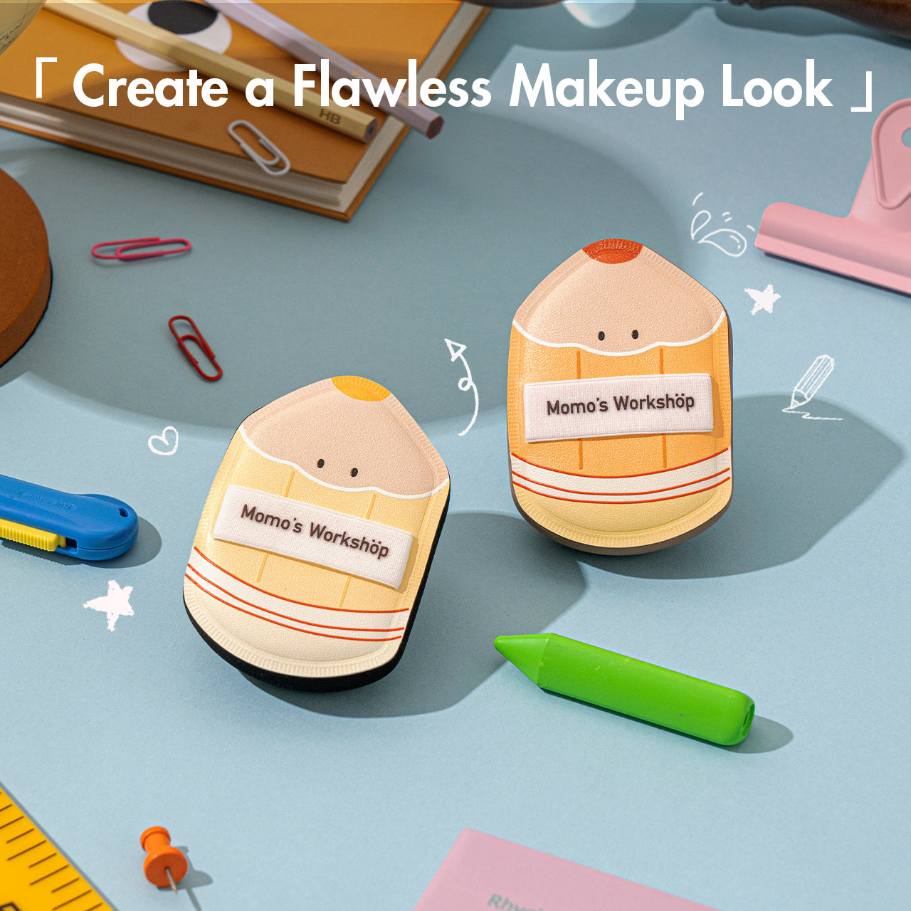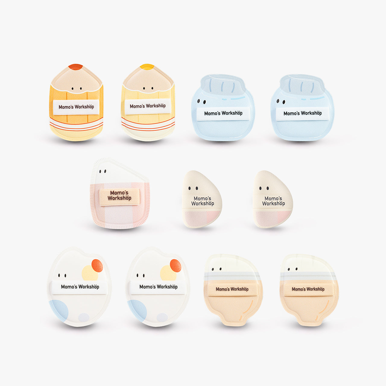 The Stationery Club Full Set gathers every puff in the collection, from pencil-sharp angles to inkwell curves and eraser edges. A complete lineup for applying, blending, and perfecting — neat, versatile, and stationery-style organized.